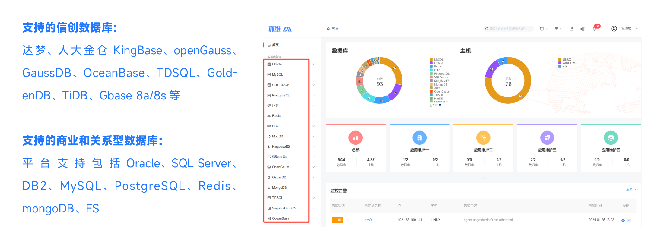 支持信創(chuàng)數(shù)據(jù)庫的接入和統(tǒng)一管理