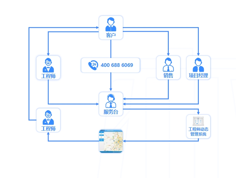 反饋機(jī)制(駐場(chǎng)工程師、銷售、項(xiàng)目經(jīng)理、官方電話)確保